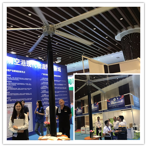 展会上,我司工作人员为客户全方面讲解直驱工业大风扇功能及特点,以及怎样解决高大空间通风降温的难题。同时,现场工业大风扇开启,送来徐徐凉风,让客户切身体验直驱工业大风扇带来的神奇效果。